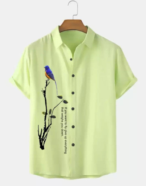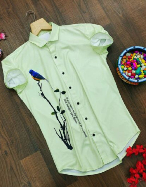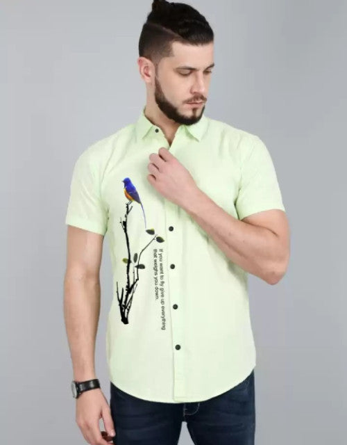 Men Regular Fit Printed Cut Away Collar Casual Shirt