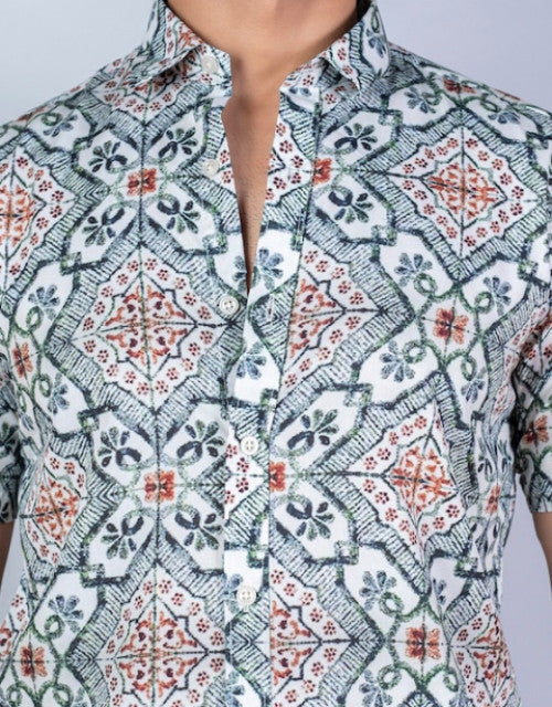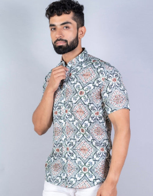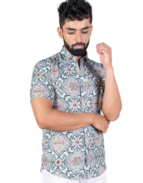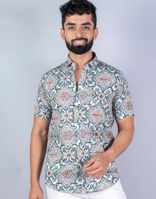 Men Regular Fit Printed Spread Collar Casual Shirt