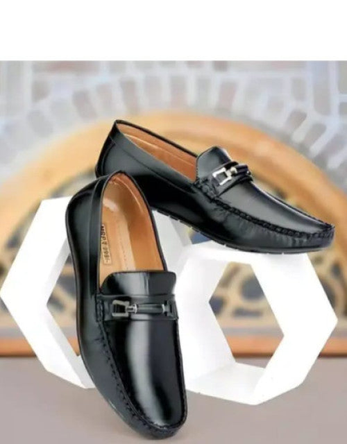 Men's Hugh-01 Black Faux Leather Driving Penny Loafers Boat Shoes